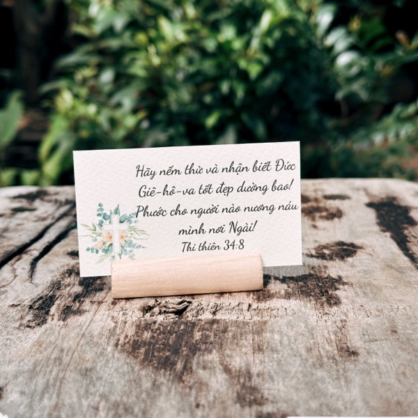 Bộ 60 Thẻ Giấy Học Kinh Thánh 9x5cm - Đế Gỗ Trang Trí Bàn