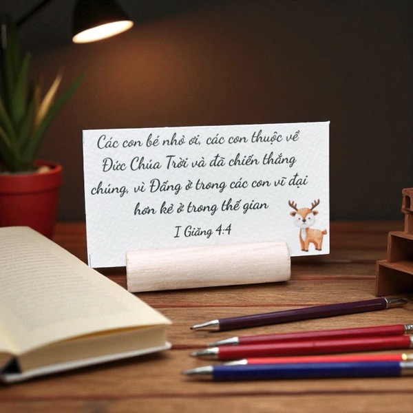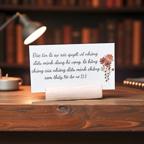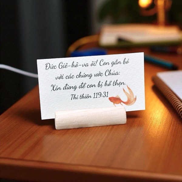 Combo 60 thẻ Kinh Thánh 9x5cm có đế gỗ – bộ thẻ học Lời Chúa vừa ý nghĩa vừa đẹp mắt, dành cho góc bàn học và làm việc. Mỗi ngày để Lời Chúa hiện diện và ghi nhớ lời ấy