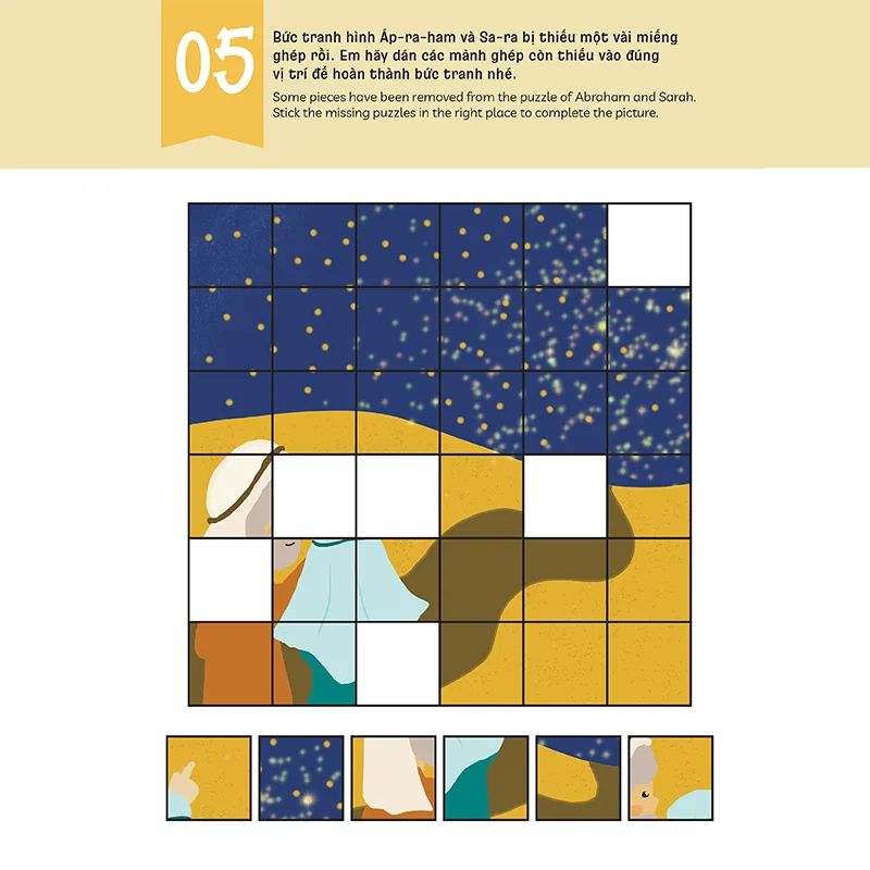 Giúp bé từng bước làm quen với hình ảnh Kinh Thánh, từ ngữ Kinh Thánh và câu chuyện lớn của Đức Chúa Trời theo cách dễ hiểu hơn.