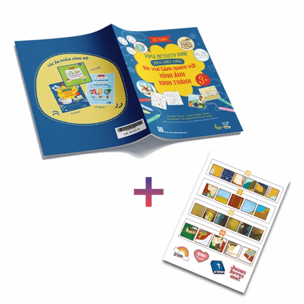 Bộ sản phẩm gồm Em học Câu chuyện lớn của Đức Chúa Trời, Sách hoạt động Bé vui làm quen với hình ảnh Kinh Thánh và Bé tập viết chữ cái Tiếng Việt và làm quen với từ ngữ Kinh Thánh.