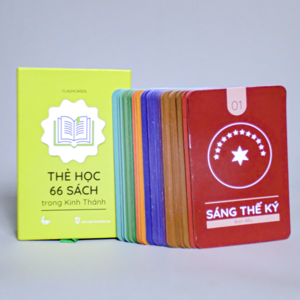 Thẻ học 66 sách trong Kinh Thánh là bộ thẻ giúp người học ghi nhớ thông tin chính của từng sách một cách trực quan, ngắn gọn và dễ ôn tập. Phù hợp cho cá nhân, gia đình, lớp học Kinh Thánh và người hướng dẫn muốn việc học Lời Chúa trở nên linh hoạt hơn.